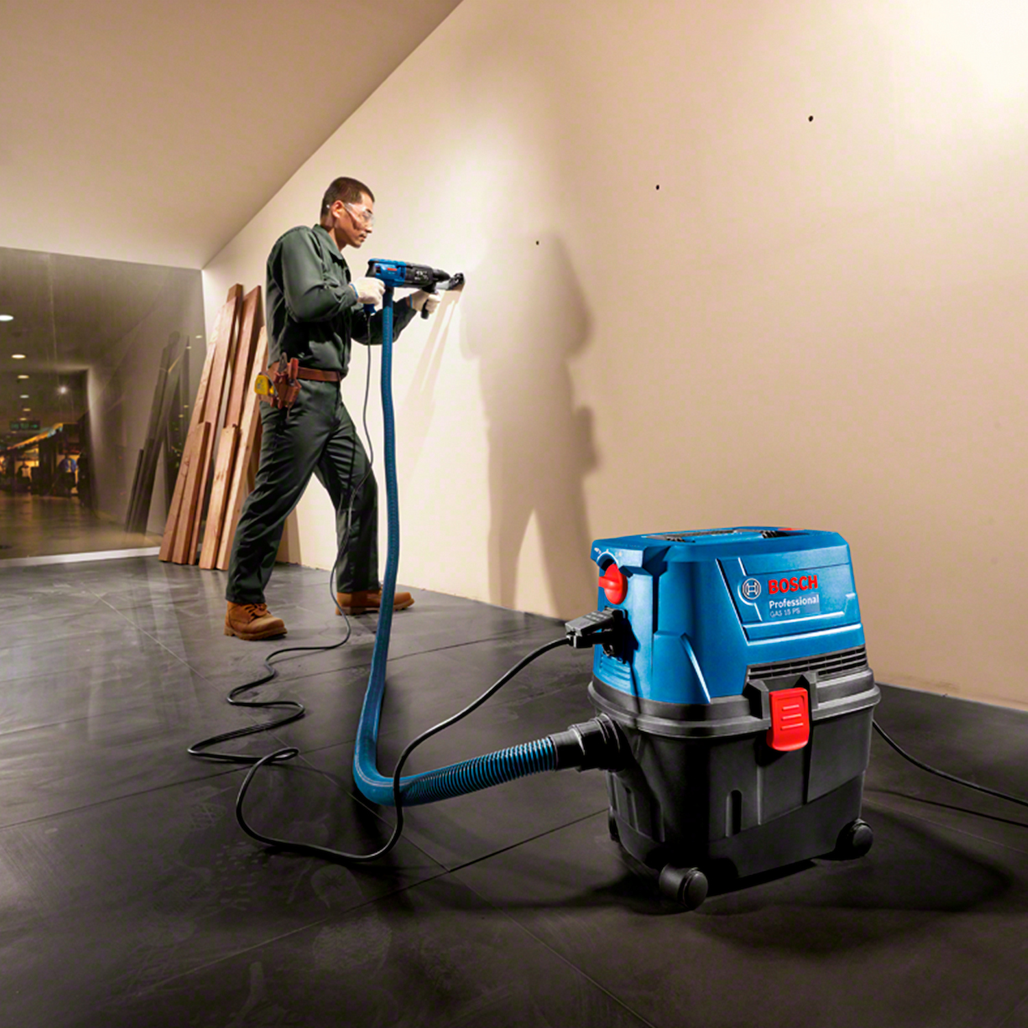 La aspiradora de polvo Bosch GAS 15 PS 1,100W es una herramienta versátil y potente para trabajos de limpieza en talleres, obras y espacios industriales