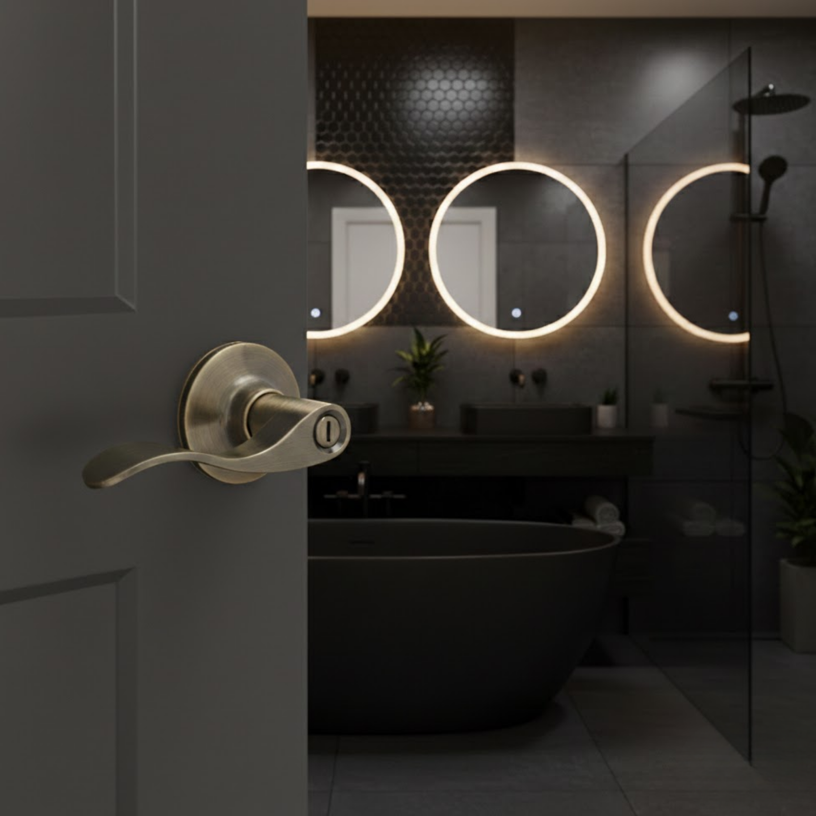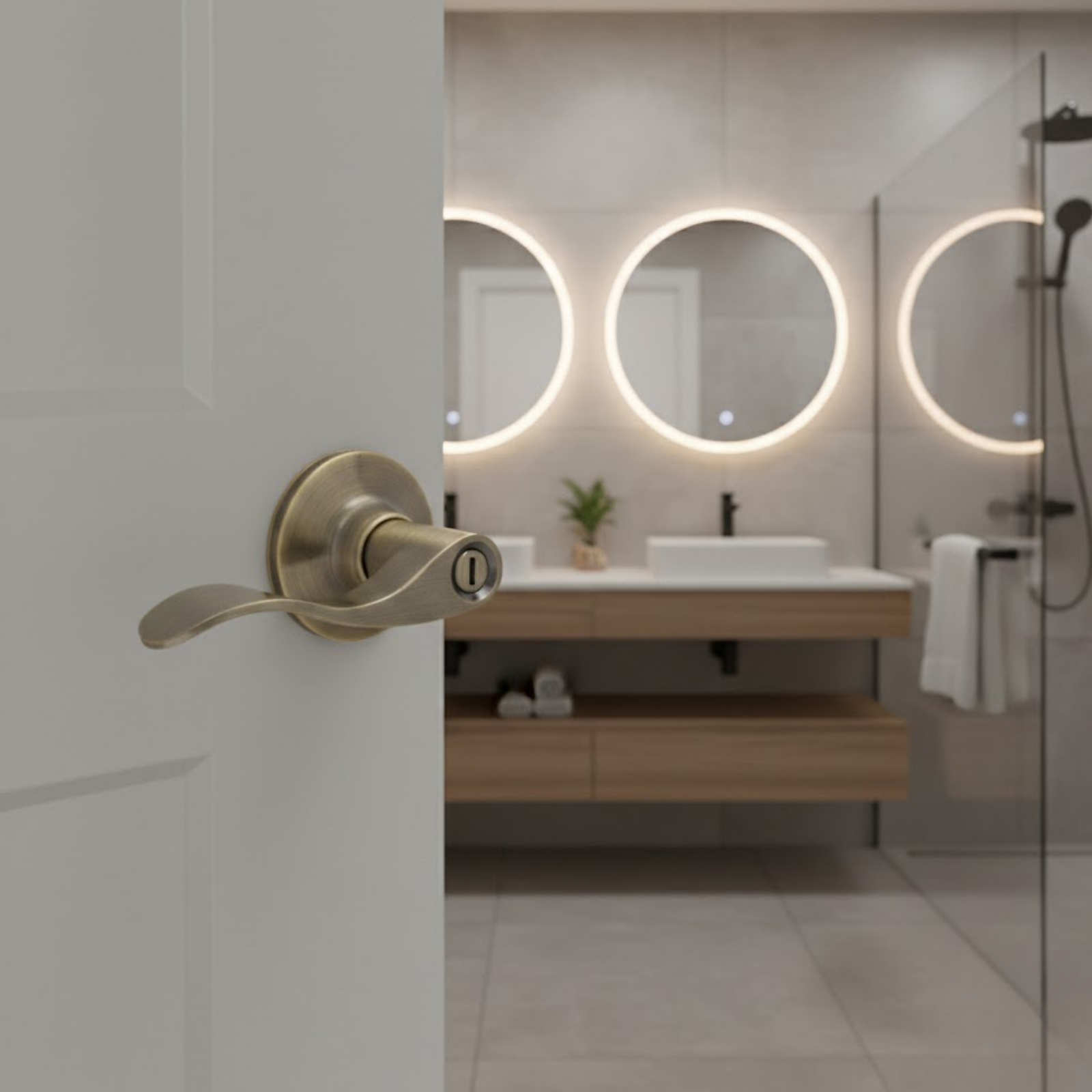 Manija tubular para puerta de baño con función de privacidad